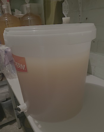 Le vin de poires de 2024 était délicieux, donc vue les quantités récoltées on a recommencé avec le Jefke et aussi avec différentes autres sortes de poires.