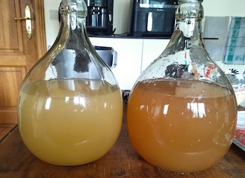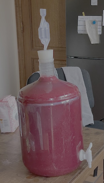 Le vin de groseilles et le vin de raisin mis en jarre en 2024 étaient très bon et donc on a recommencé.